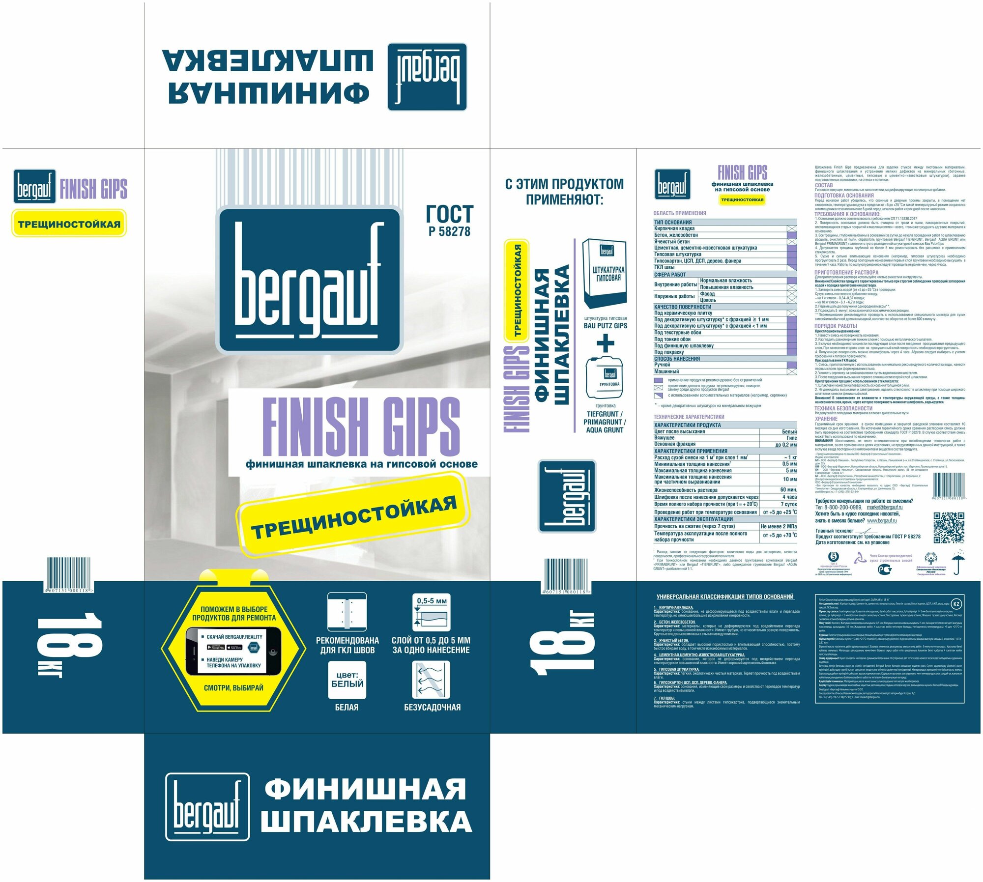 Купить Бергауф Финиш Гипс шпаклевка финишная гипсовая (18кг) белая / BERGAUF Finish Gips финишная шпатлевка на гипсовой основе (18кг) белая