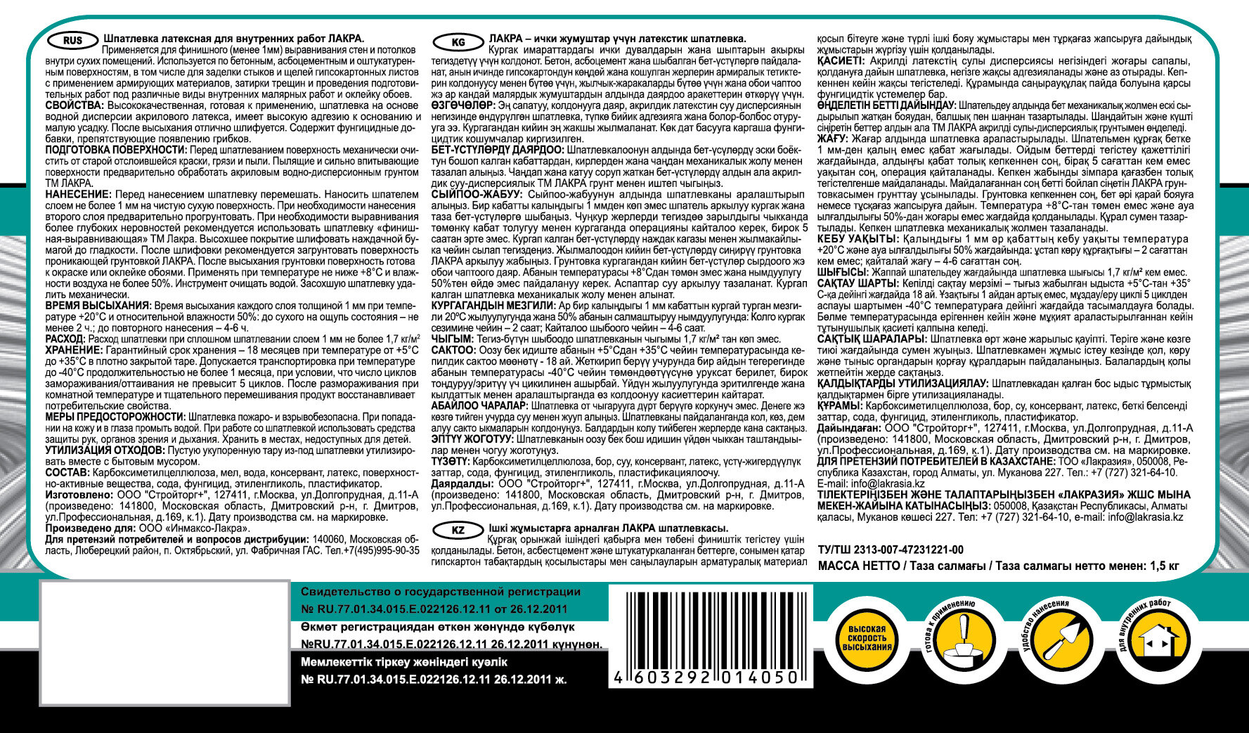 Латексная шпатлевка для внутренних работ лакра Лк-00003808