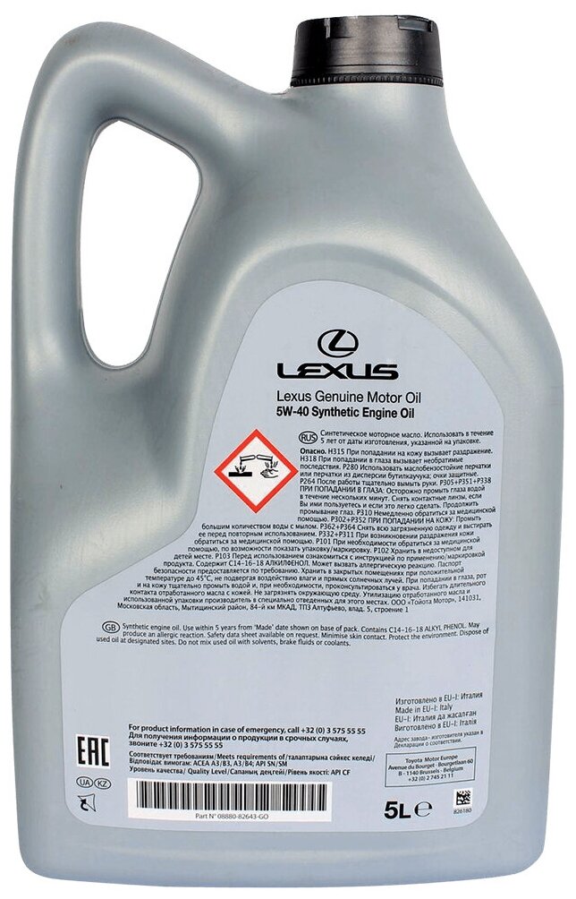 Купить Масло моторное lexus 5w40 5л Toyota 0888082643GO