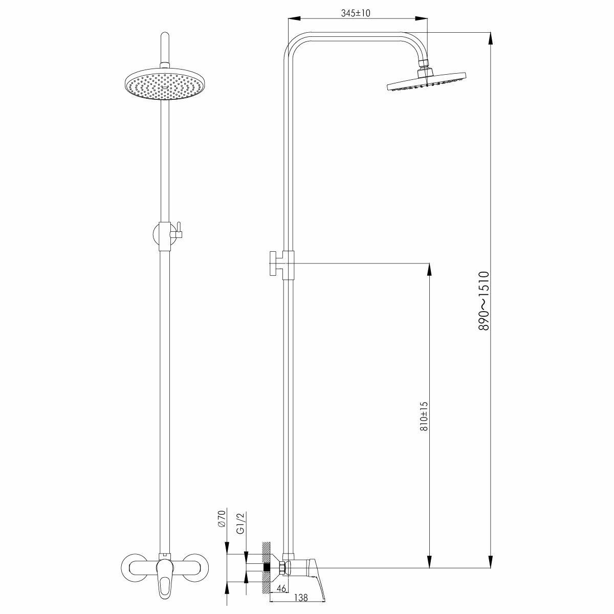 | Дополнительная информация | высота стойки для душа: 1535 мм; диаметр верхнего душа: 200 мм |