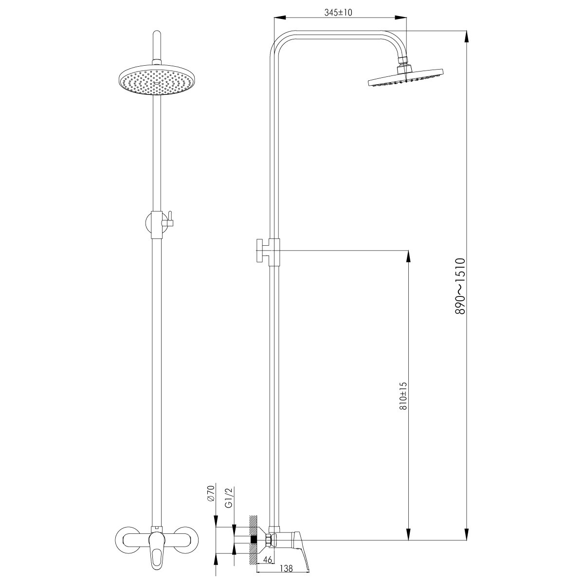 Rossinka Душевая система Rossinka B35-44 с регулируемой высотой штанги и лейкой "Тропический дождь"