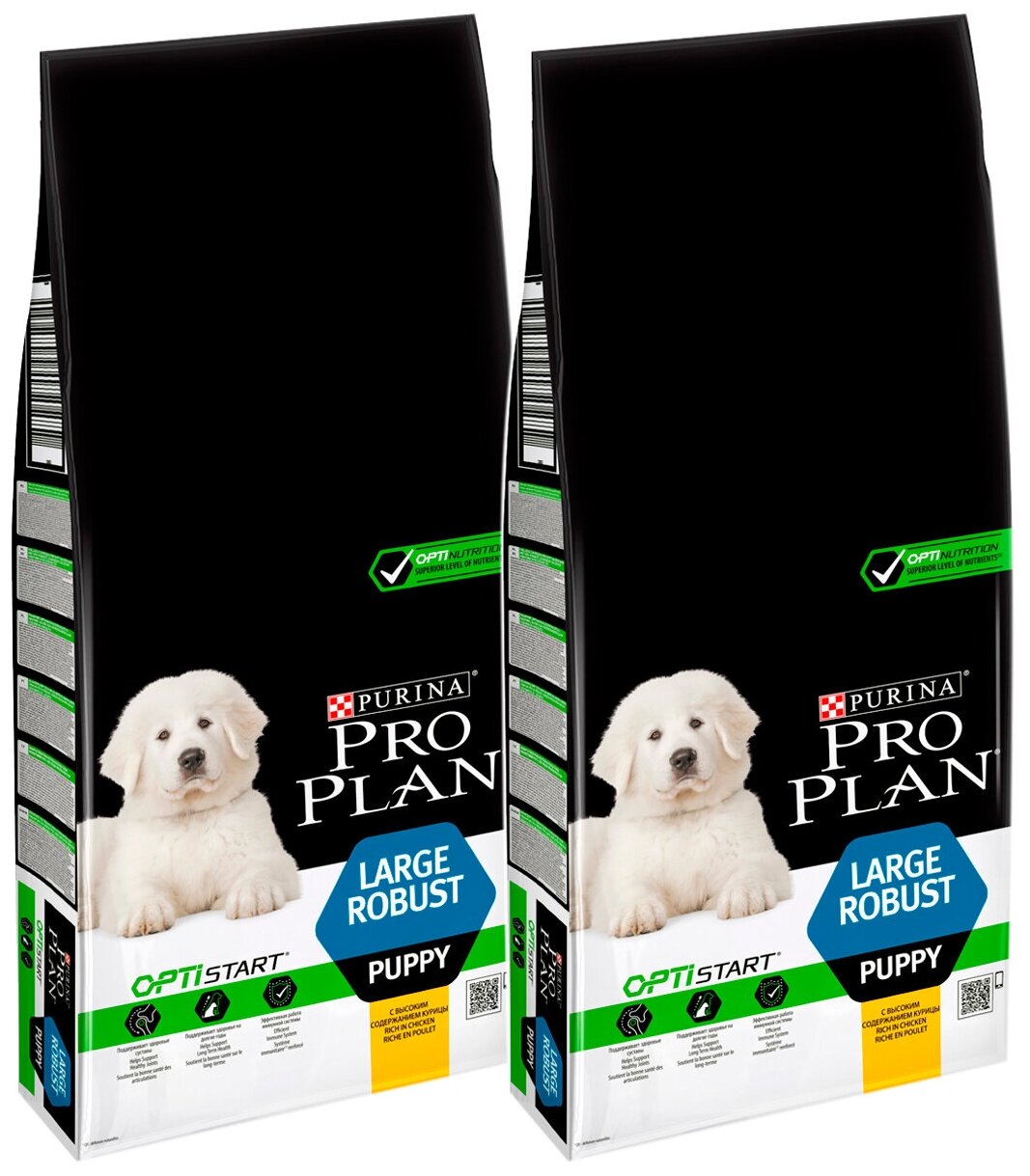 PRO PLAN OPTISTART PUPPY LARGE ROBUST для щенков крупных пород мощного телосложения с курицей и рисом (12 + 12 кг)