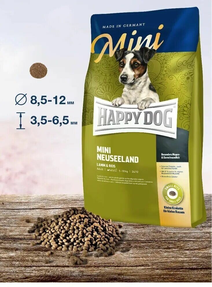 Сухой корм для собак Happy Dog Mini Neuseeland, при чувствительном пищеварении, ягненок 1 кг (для мелких пород)