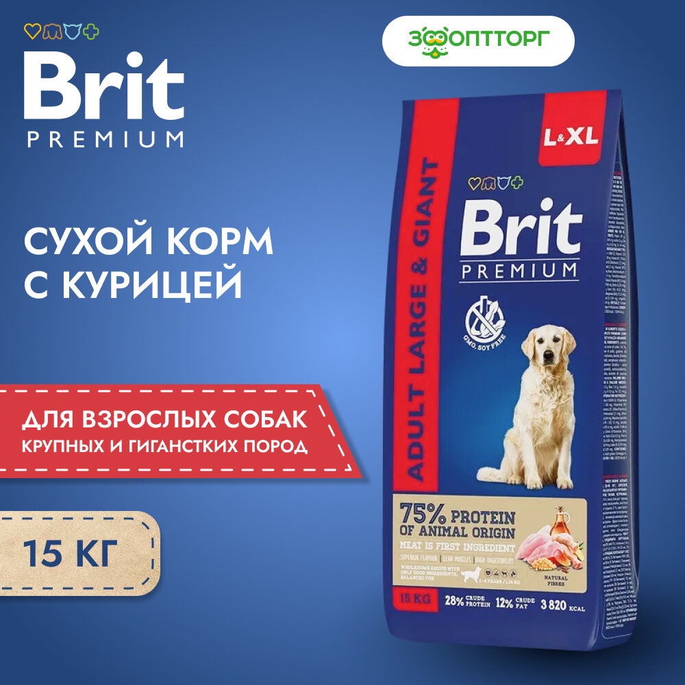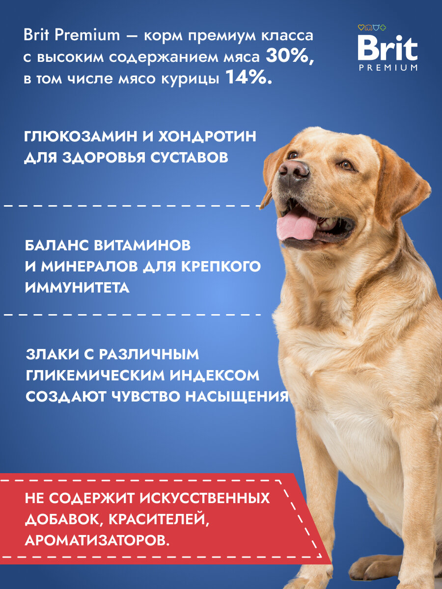 Корм сухой Brit Premium для взрослых собак крупных пород, с курицей, 15 кг интересное: