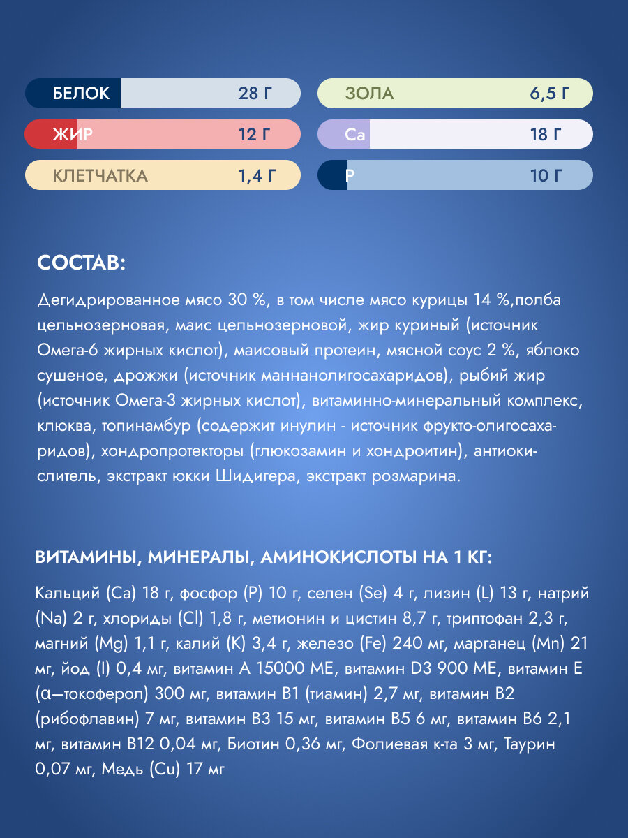 Состав нормальный, собака ест с удовольствием, сухой корм он и есть сухой корм, переплачивать за ненужные добавки не стоит