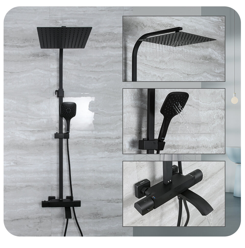 Купить GappoДушевая стойка смеситель для душа Душевая система с термостатом G2407-60, черный
