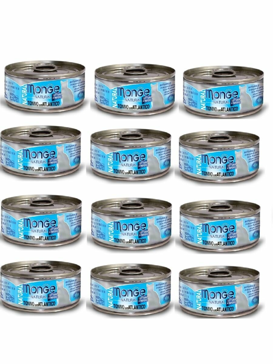 Monge Cat Natural консервы для кошек атлантический тунец, 80гр, 12 банок