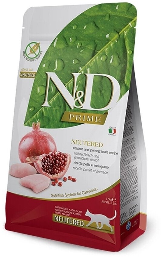 Farmina N&D Cat Prime Chicken&Pomegranate Neutered корм для стерилизованных кошек и котов Цыпленок и гранат, 1,5 кг.