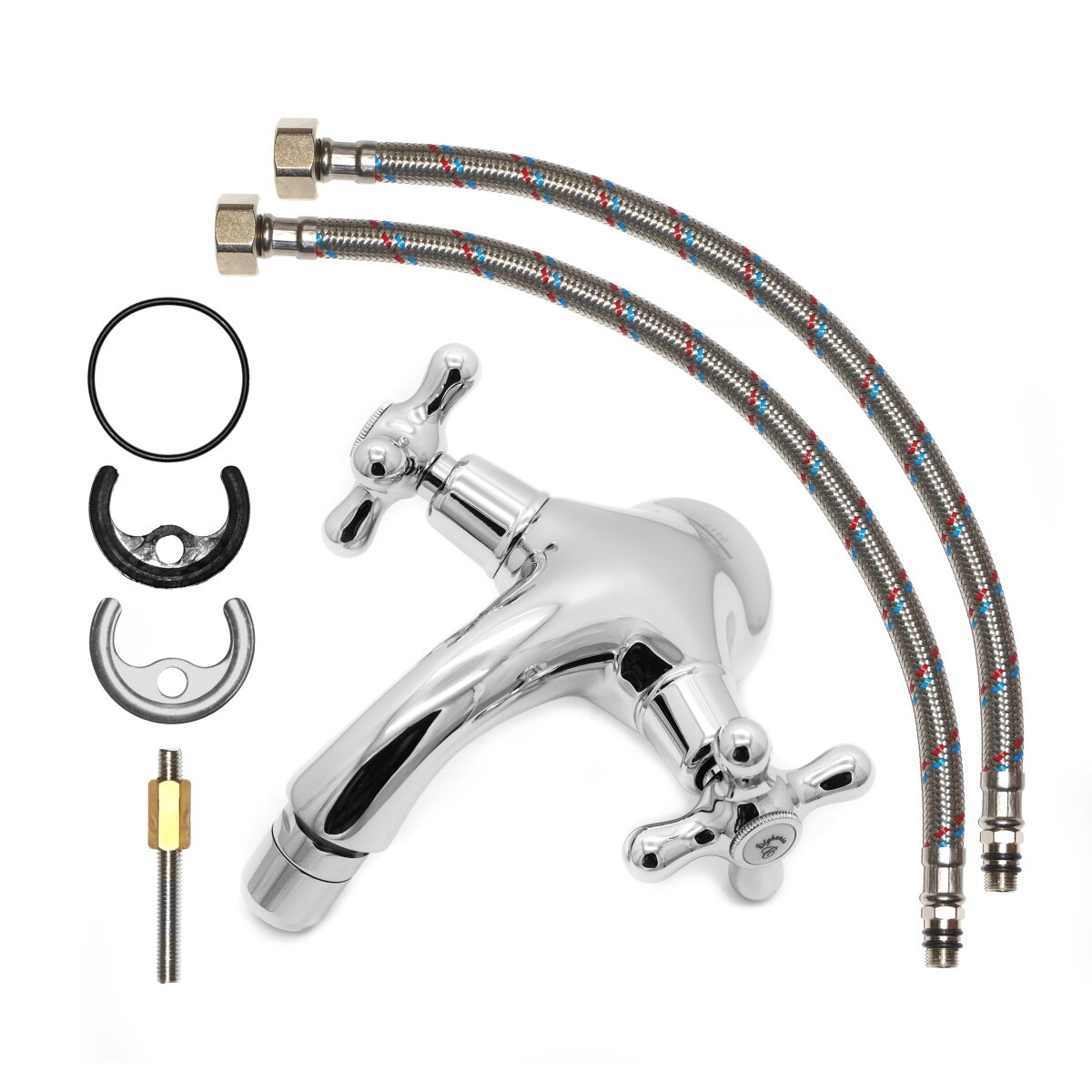 Смеситель универсальный для раковины и биде латунный двухвентильный с гибкой подводкой ELGHANSA 4902754, хром