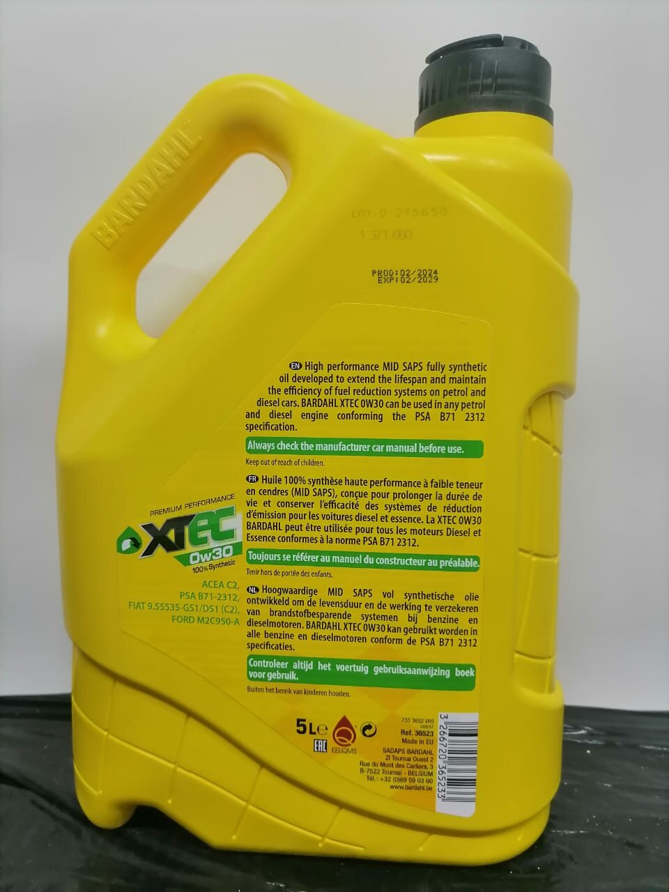 Масло моторное bardahl xtec 0w-30 c2 psa синтетическое 5 л 36523 bardahl 36523
