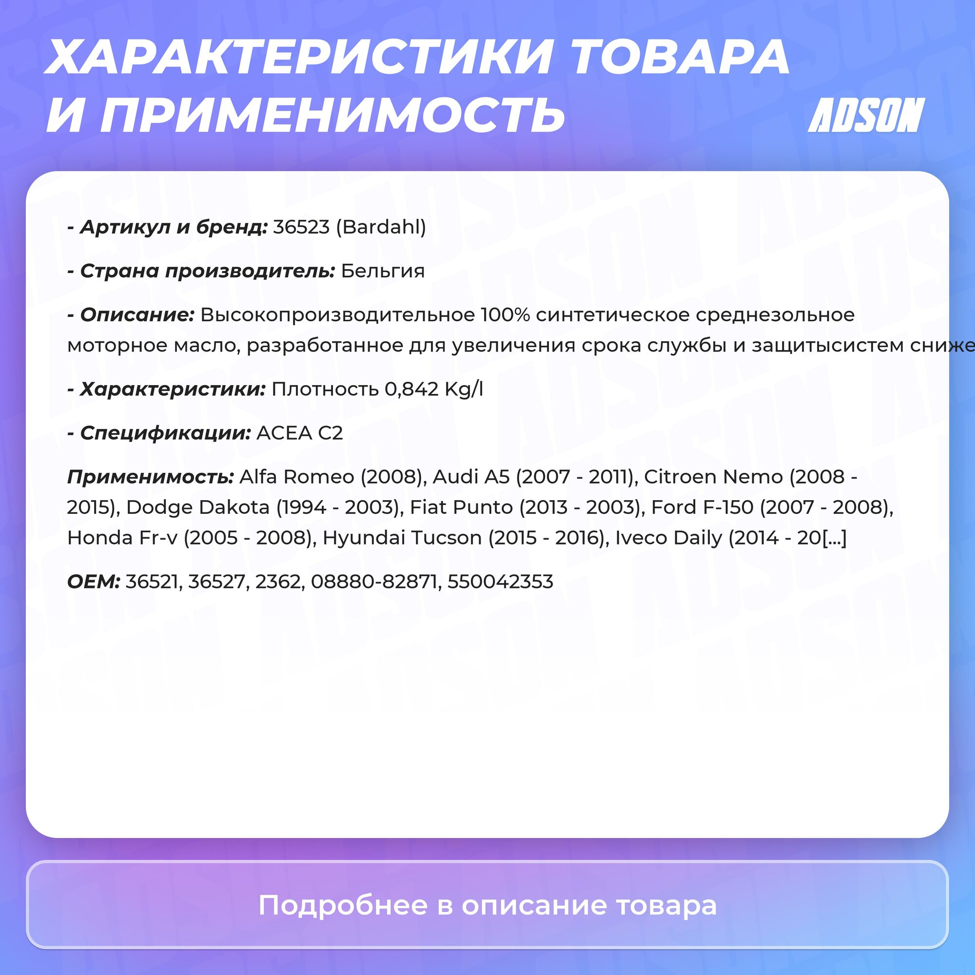 СохранитьBardahl xtec 0w30 5л (36523) интересное: