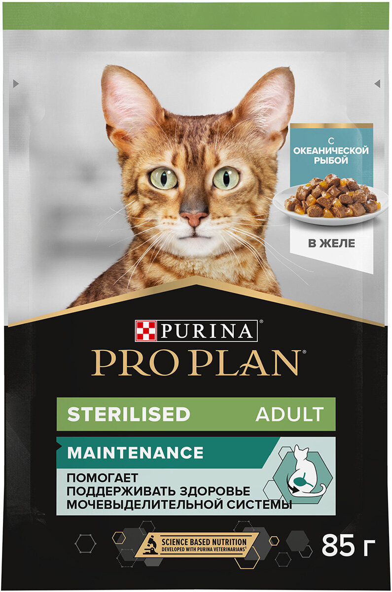 Корм для кошек PRO PLAN Sterilised для стерилизованных, с океанической рыбой в желе пауч 85г (упаковка - 26 шт)