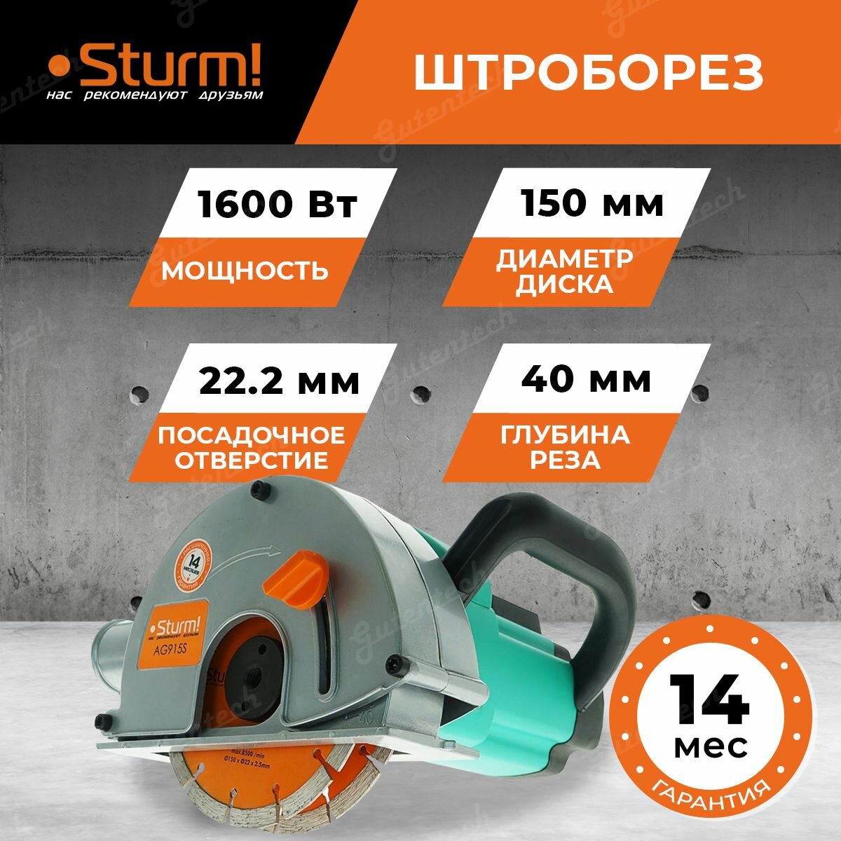 Штроборез Sturm AG915S 2018, 1600 Вт