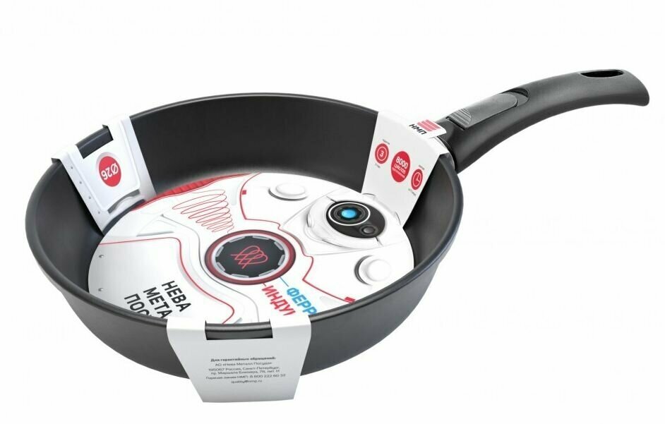 Сковорода нева металл посуда 59026 Ферра индукция, съемная ручка, 26 см.