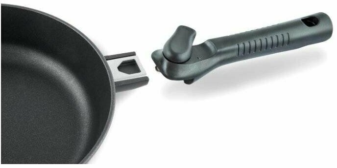 | Плюсы: | Отличная сбалансированная сковородка, Очень удобна отстёгивающаяся ручка, поставить сковороду в холодильник без неё легко. |