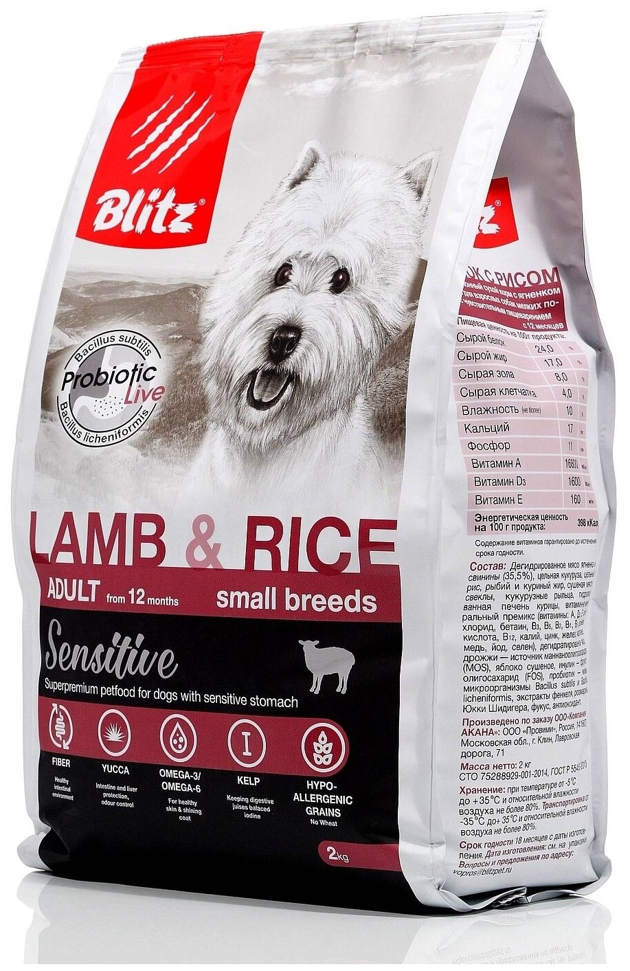 BLITZ ADULT SMALL BREEDS SENSITIVE LAMB & RICE для взрослых собак маленьких пород с ягненком и рисом (2 кг)