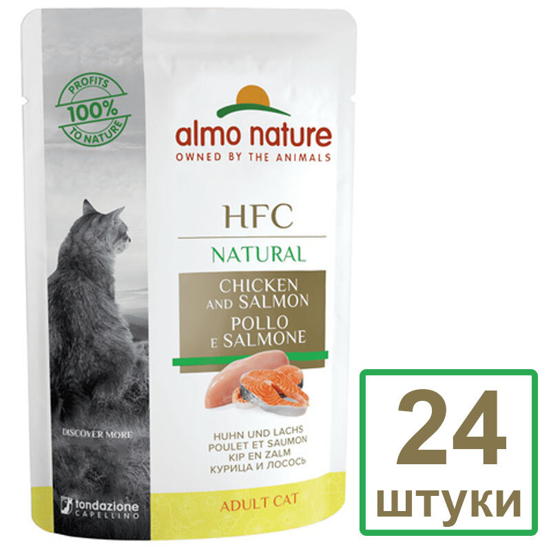 Купить ALMO NATURE CAT HFC NATURAL для взрослых кошек с курицей и лососем (55 гр х 24 шт)