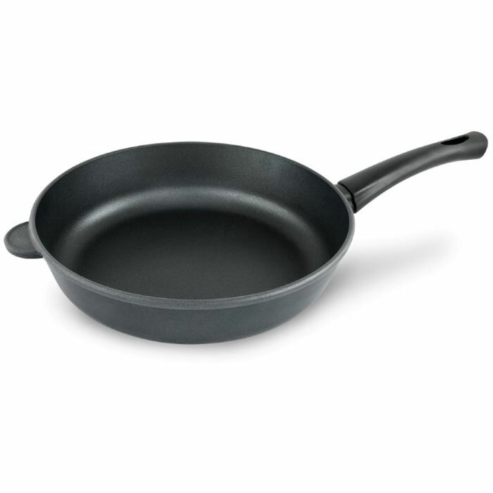 | Плюсы: | Тяжелая. Качественная. Есть небольшая выступающая ручка впереди, что очень удобно если сковорода полная. |