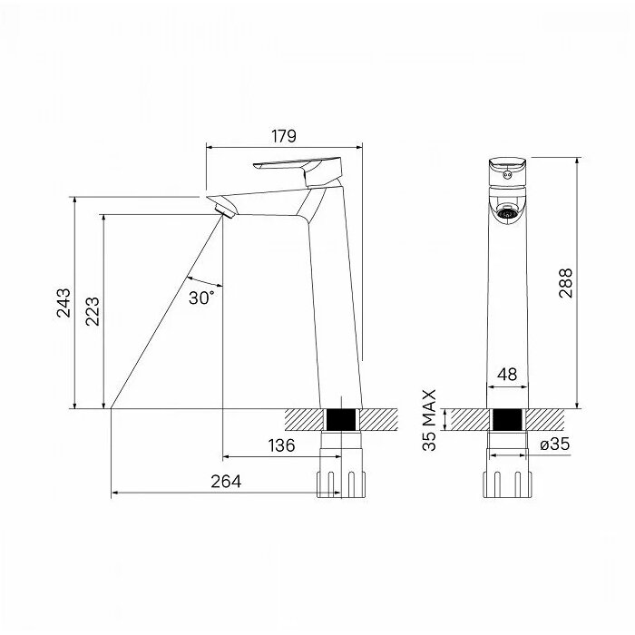 | Комплектация | смеситель - 1 шт, подводка для воды - 2 шт, комплект крепления - 1 шт, пластиковая проставка - 1 шт |