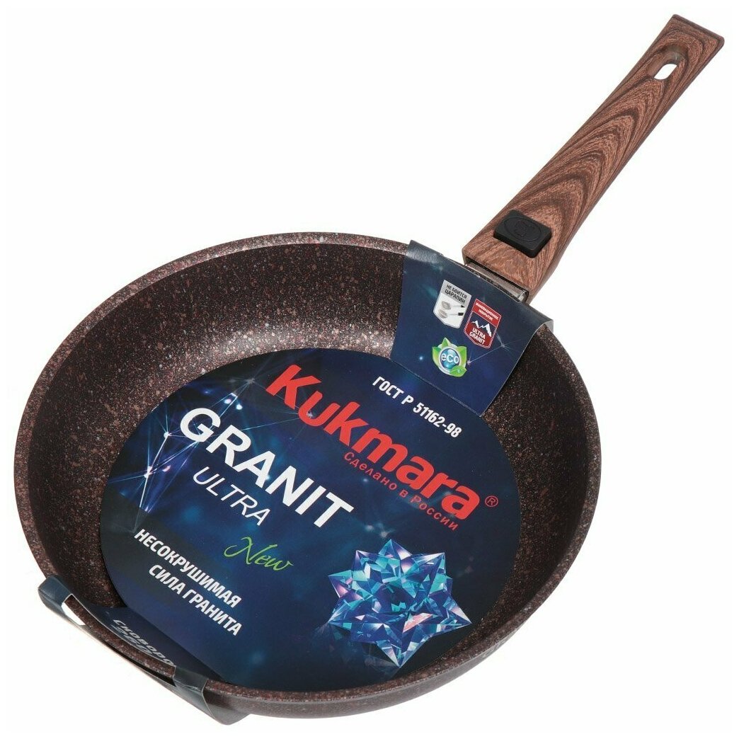 Сковорода с антипригарным покрытием со съемной ручкой Kukmara (Granit Ultra original) сго282а, 28 см
