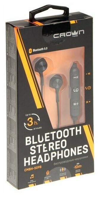 Наушники Crown CMBH-5098 беспроводные, вкладыши, с микрофоном, Bluetooth, чёрный
