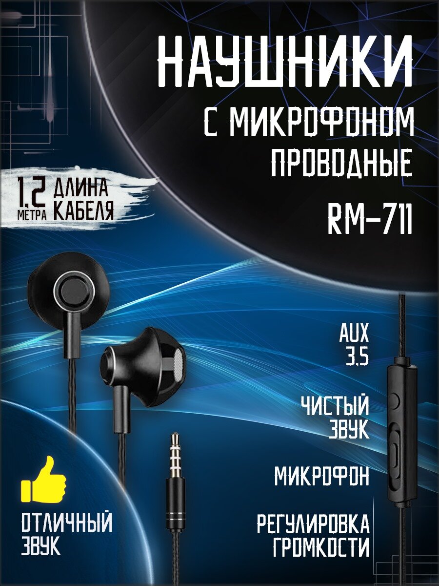 Наушники REMAX RM-711 Wired Earphone микрофон, подключение Jack 3.5 mm, black 6954851294023 интересное: