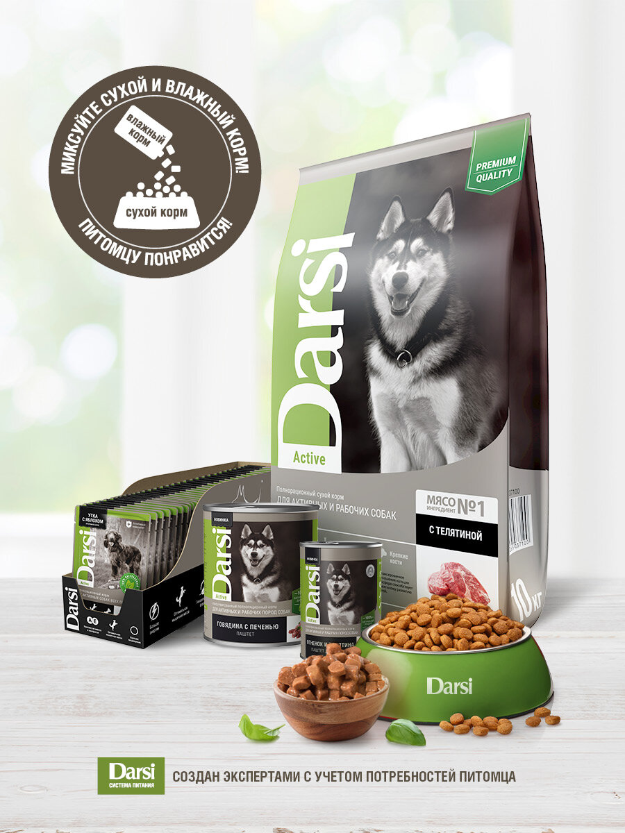 Сухой корм DARSI Active для активных собак, телятина, 10 кг