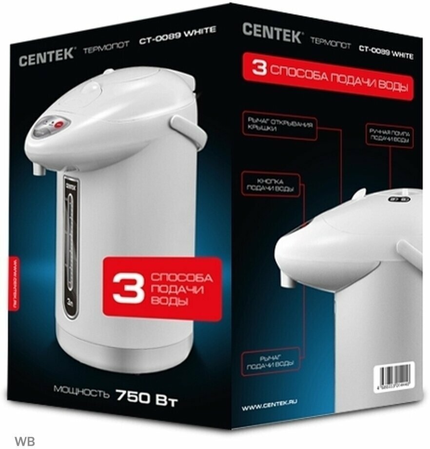 Термопот Centek CT-0089 White 3л, 750Вт, 3 способа подачи CT-0089 White .