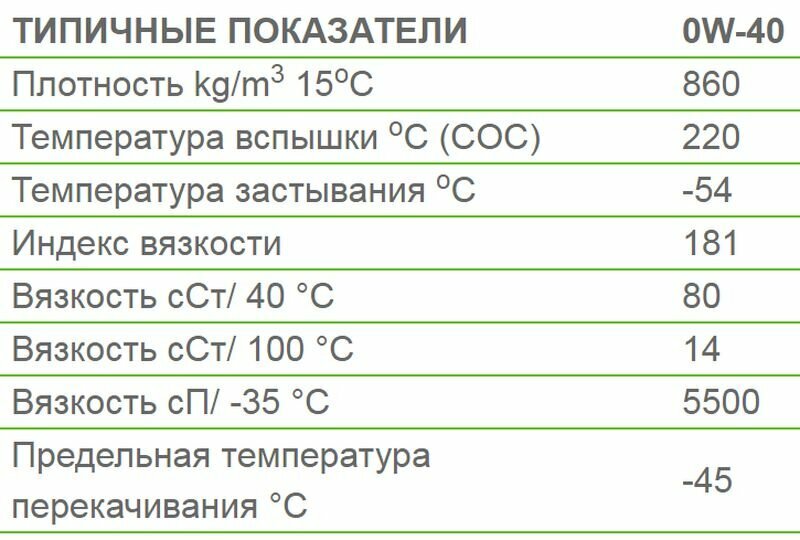 | Класс вязкости SAE | 0W-40 |