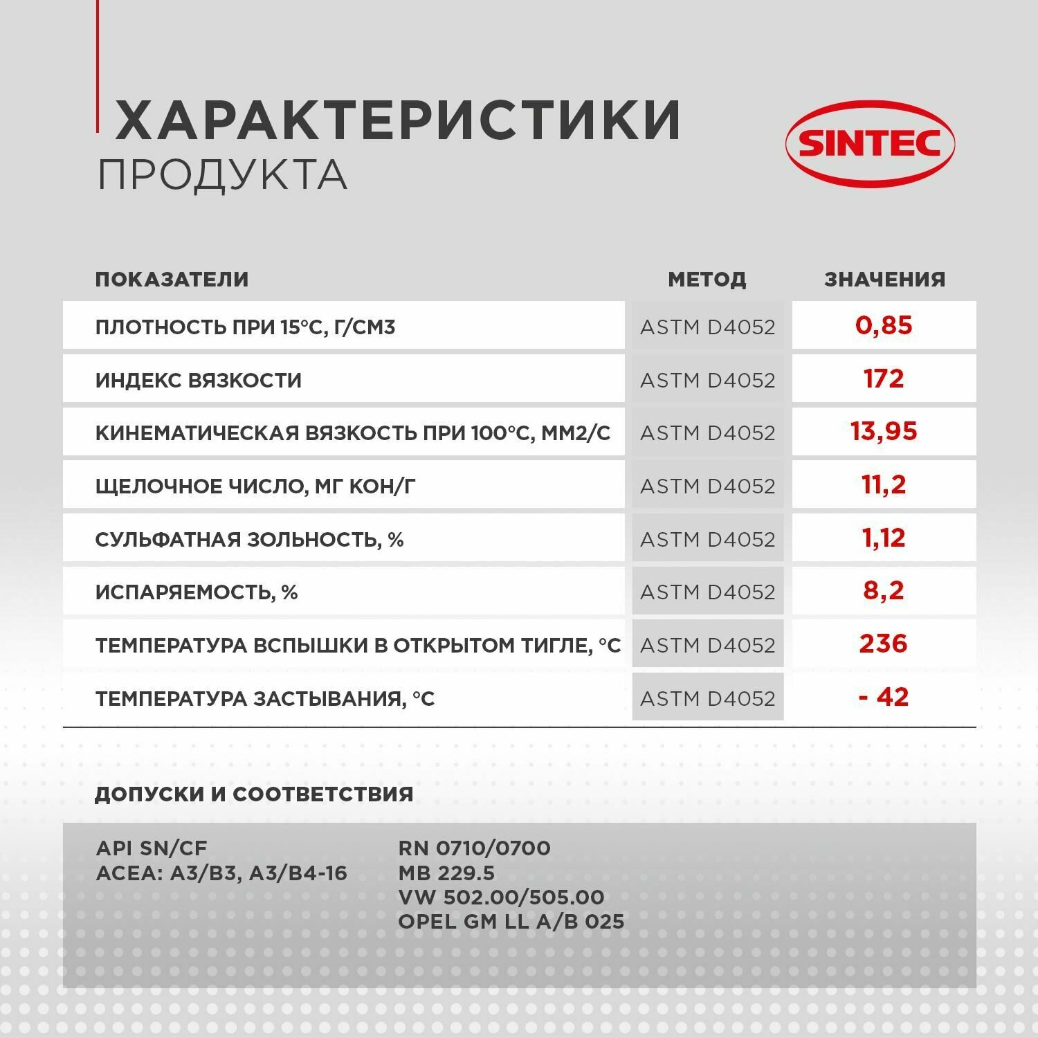 SINTEC 801971 801971 801971 SINTEC PREMIUM SAE 5W-40 API SN ACEA A3/B4 (4л)