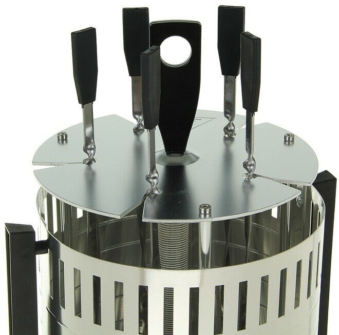 | Минусы: | Один шампур не вращается. |