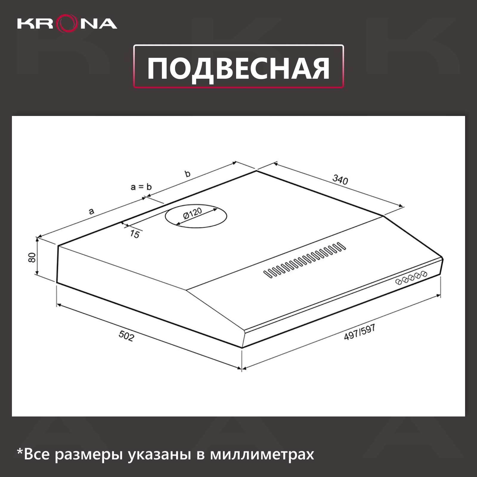 Вытяжка подвесная Krona Jessica slim PB 600 white