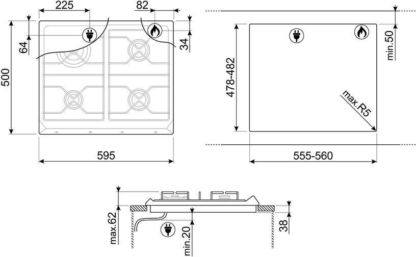 Встраиваемая газовая панель SMEG SRV864AOGH