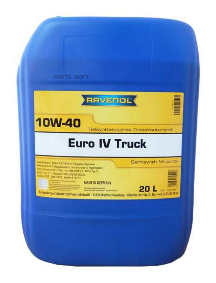 Купить Моторное масло RAVENOL Euro IV Truck SAE 10W-40 (20л) new