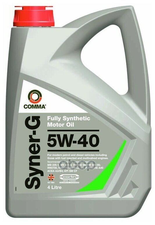 COMMA Масло Моторное Синт. Comma Syner-G 5w40,4л, Api Sncf, Acea A3/А3b4, Mb229.5, Mb226.5, V