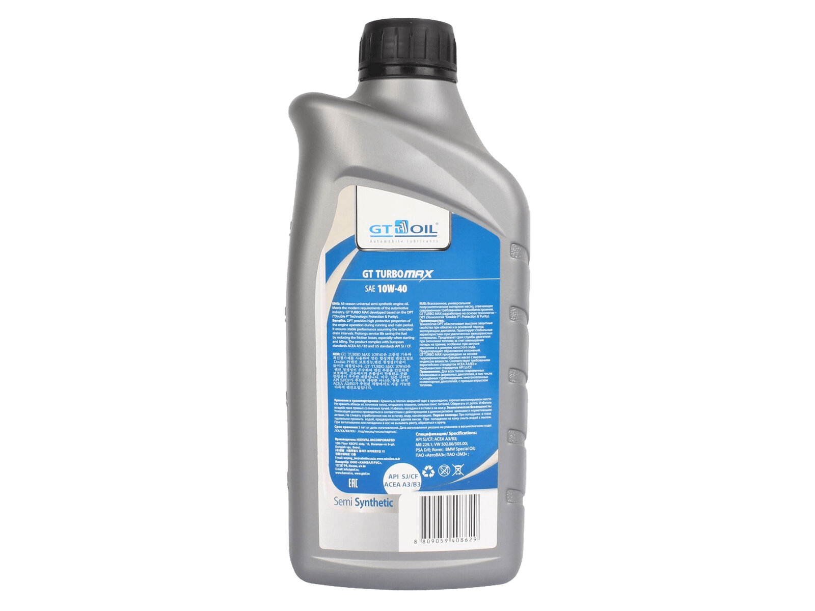 Масло моторное полусинтетическое всесезонное GT Turbo Max, SAE 10W-40, API SJ/CF, 4 л GT OIL / арт. 8809059408636 - (1 шт)