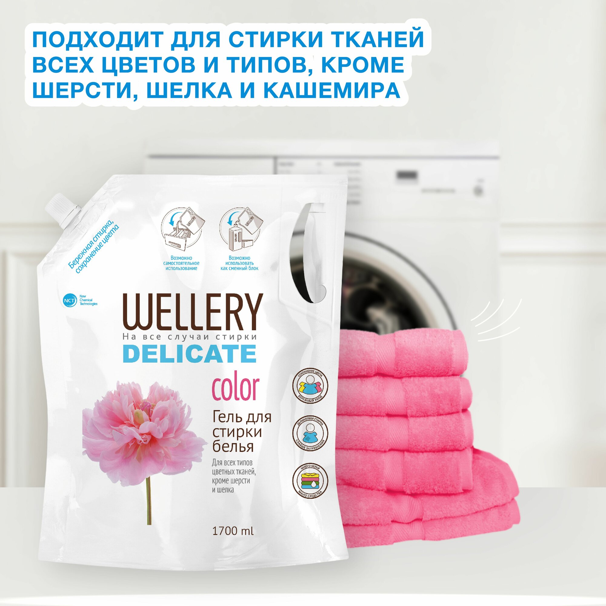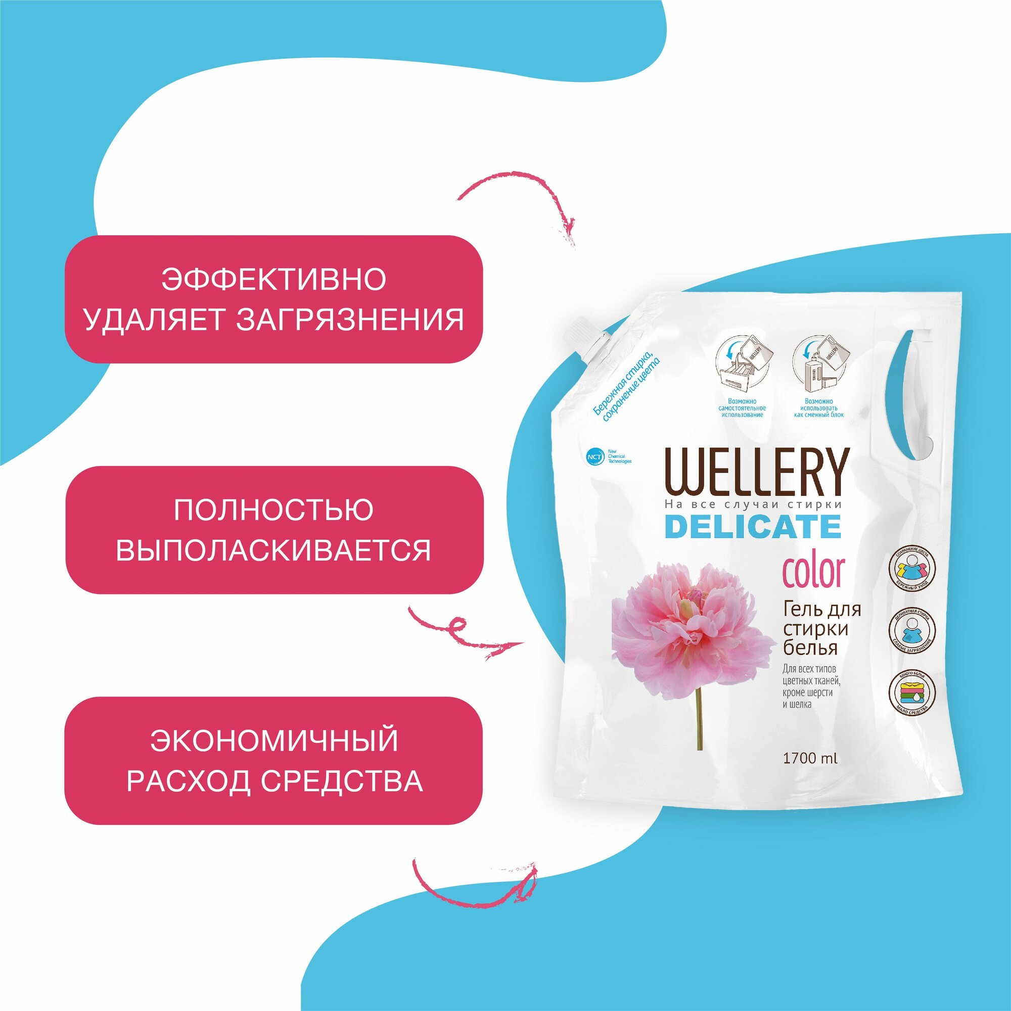 Купить Средство для деликатной стирки цветного белья "WELLERY DELICATE color", дой-пак, 1,7л