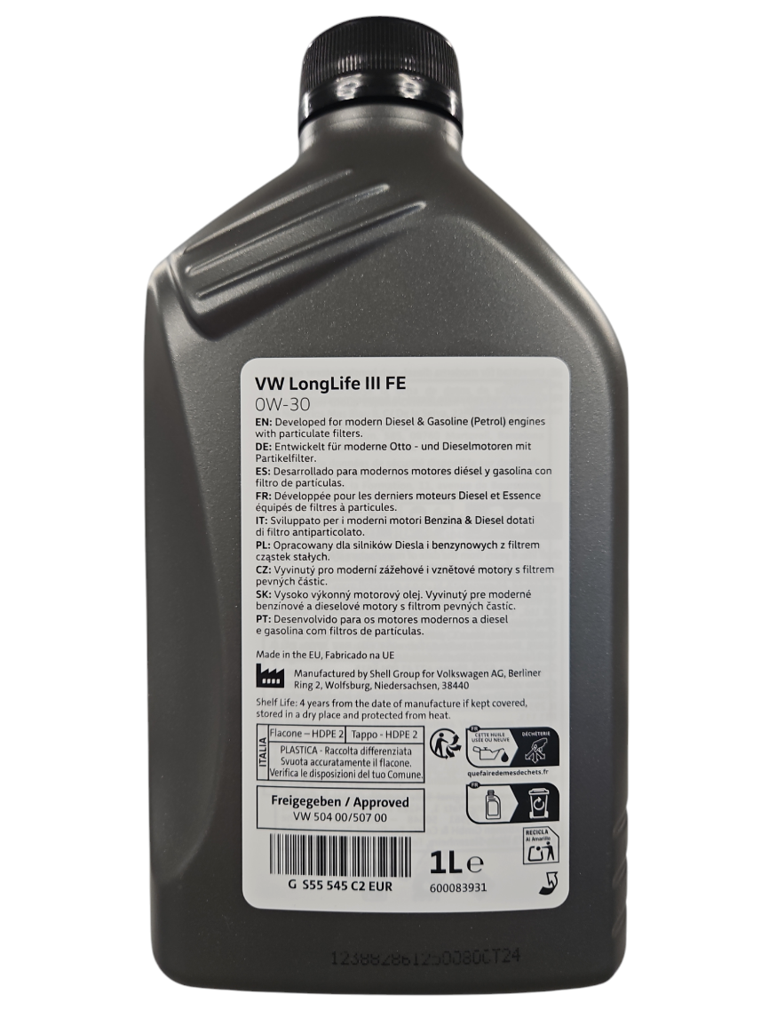 Масло Моторное Vag Longlife Iii 0w-30 Синтетическое 1 Л Gs5/С55545m2/М2eur VAGGS55545M2EUR