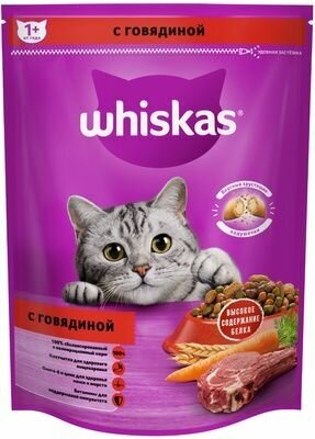 Сухой корм Whiskas для кошек, говядина, подушечки, 350 г
