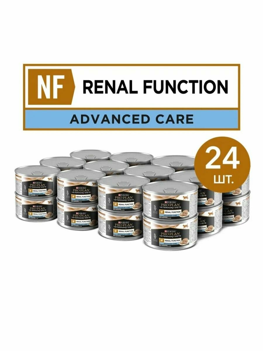 Purina Pro Plan Veterinary Diets NF Renal Function Advanced care (Поздняя стадия) влажный корм для взрослых кошек при хронической почечной недостаточности паштет в консервах - 195 г х 24 шт