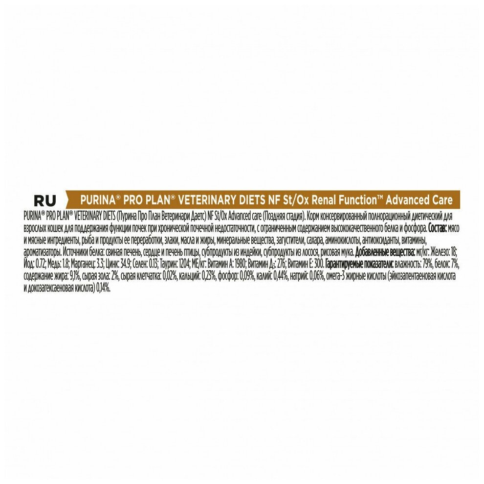 Влажный корм для кошек Purina Pro Plan Veterinary Diets NF St/Ox RENAL FUNCTION Advanced Care, при поздней стадии почечной недостаточности, 48шт.х195г