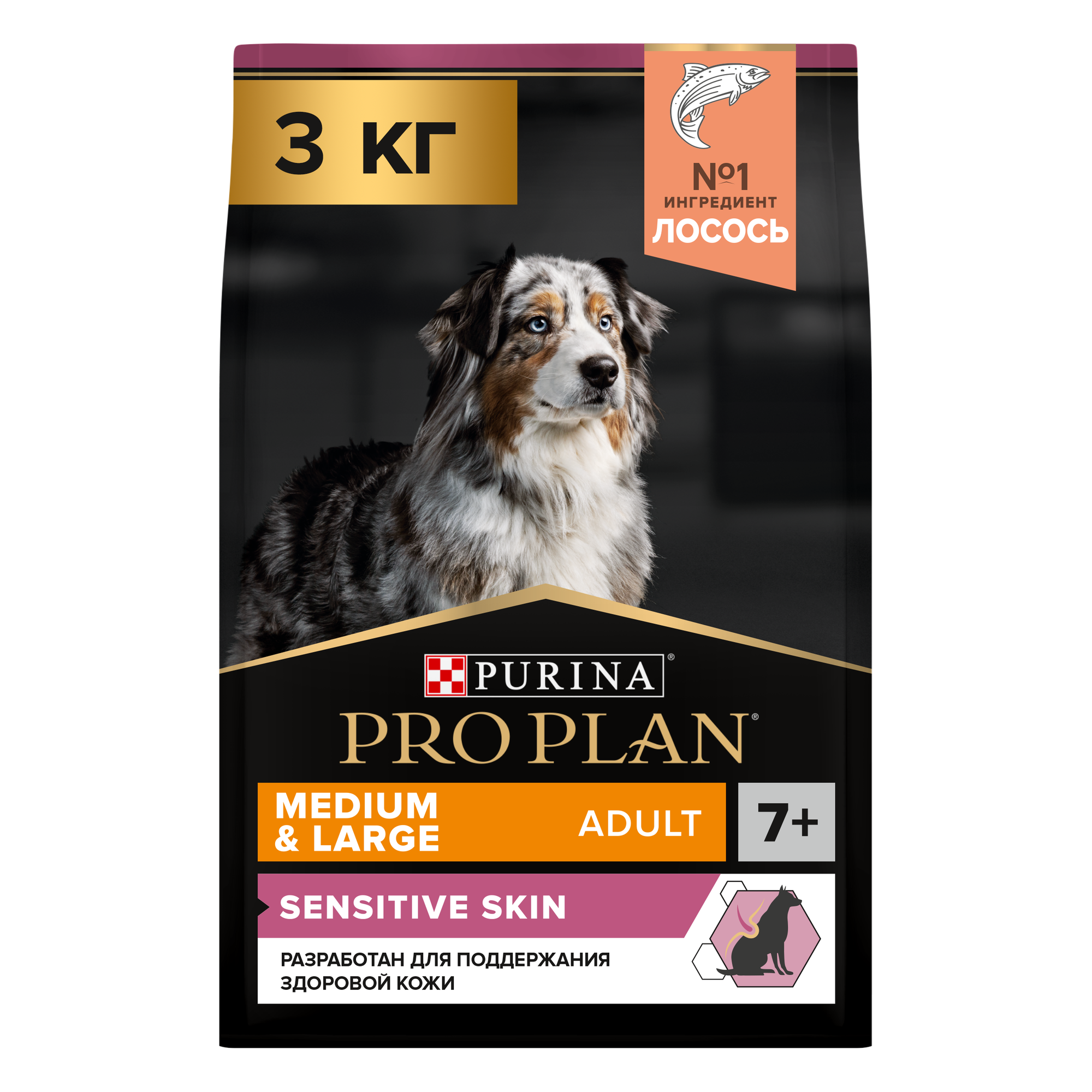 Купить Сухой корм Pro Plan® для собак старше 7 лет средних и крупных пород с чувствительной кожей, с высоким содержанием лосося., Пакет, 3 кг