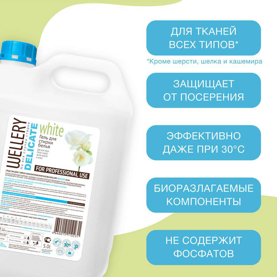 Гель для стирки Wellery DELICATE WHITE для деликатной стирки белых вещей, 5 л
