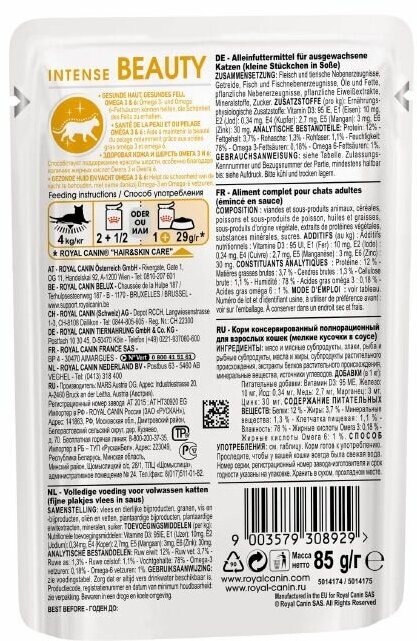 Royal Canin паучи RC Кусочки в желе для кошек 1-7 лет : идеальная кожа и шерсть (Intense Beauty) 41510008R0 | Intense Beauty 0,085 кг 41717 (34 шт)