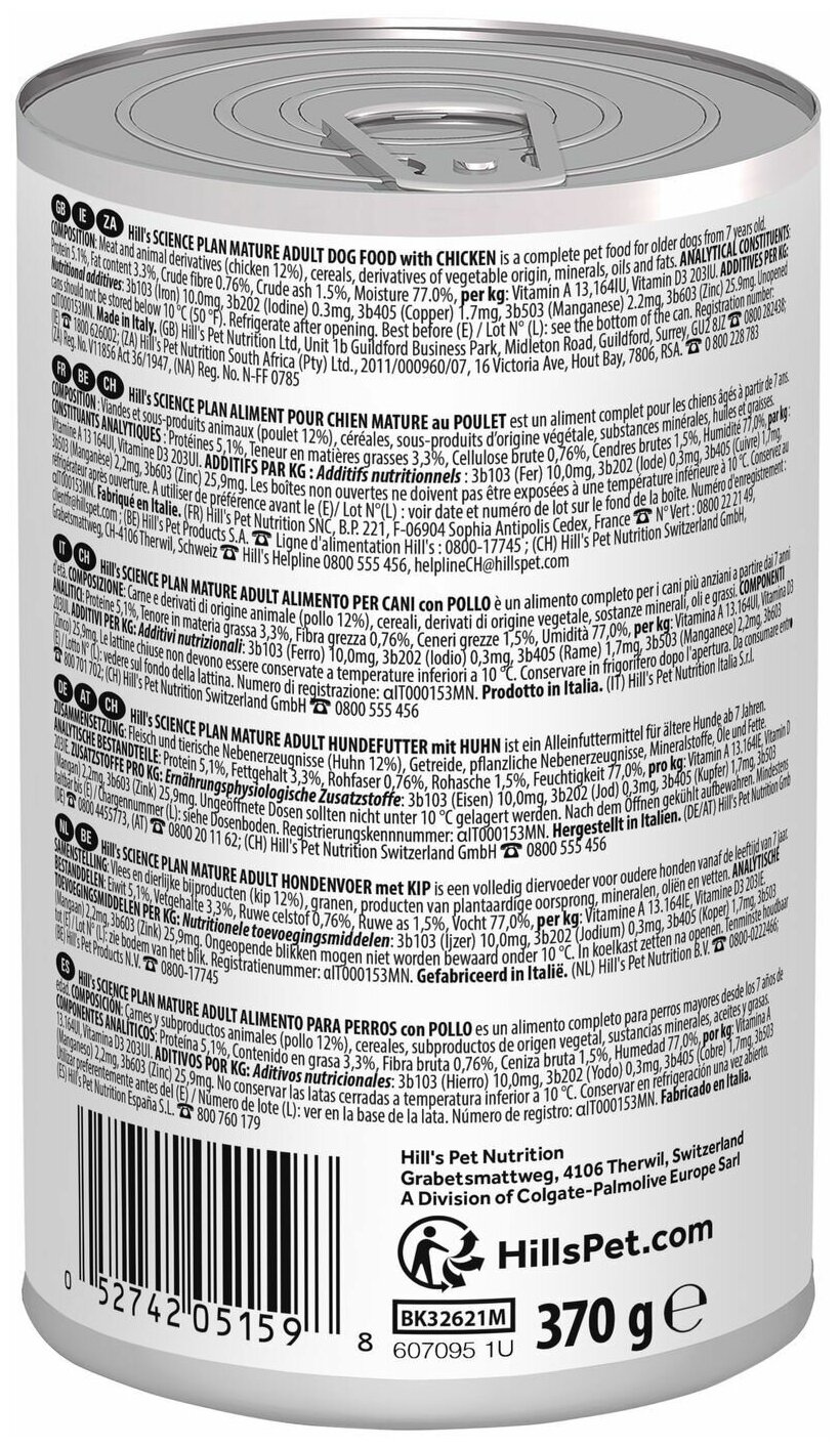 Консервы Hill's Science Plan для собак старшего возраста для поддержания жизненной энергии и иммунитета, с курицей, 12 шт по 370 г