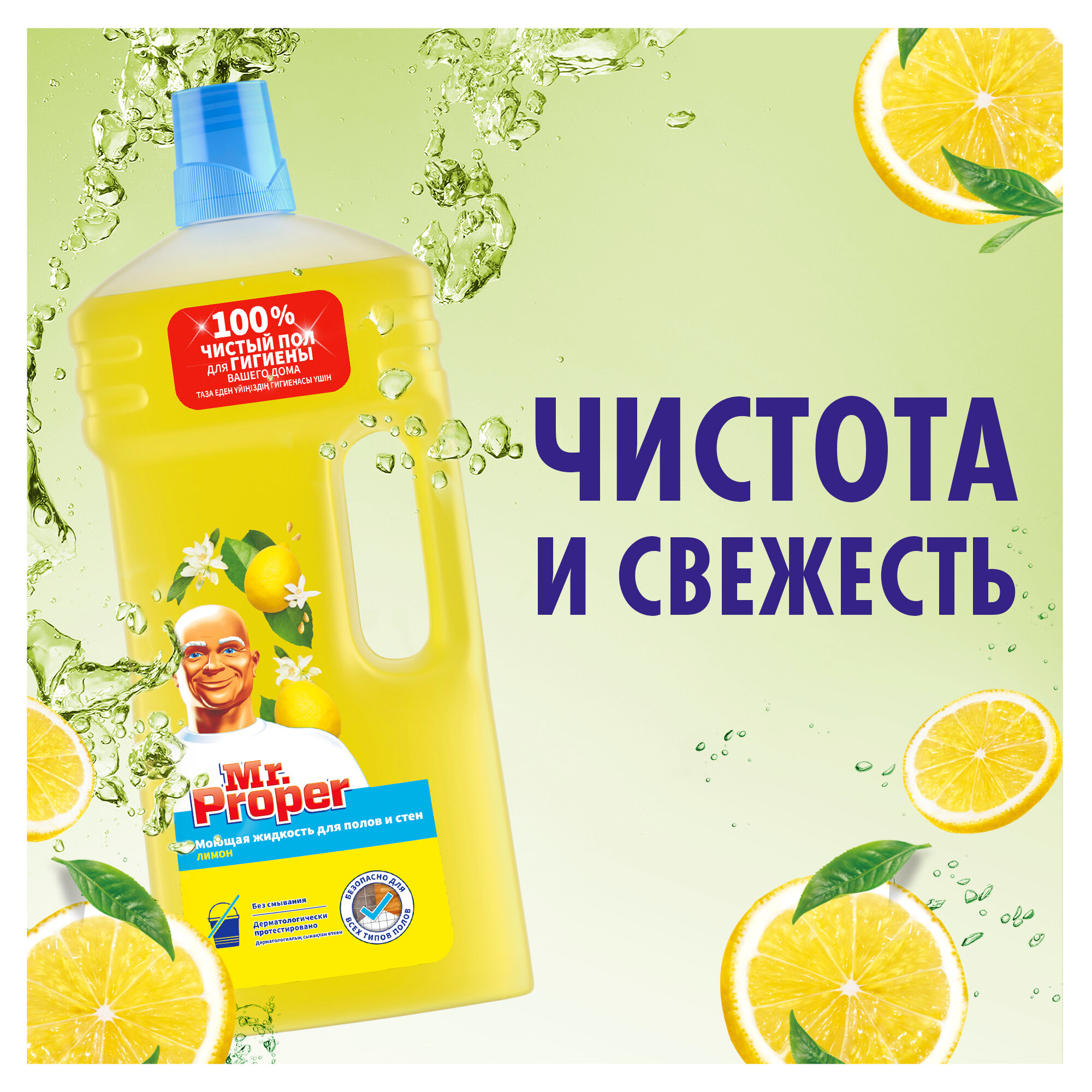 Средство для мытья пола и стен 750 мл, MR.PROPER (Мистер Пропер) "Лимон" В комплекте: 1шт.