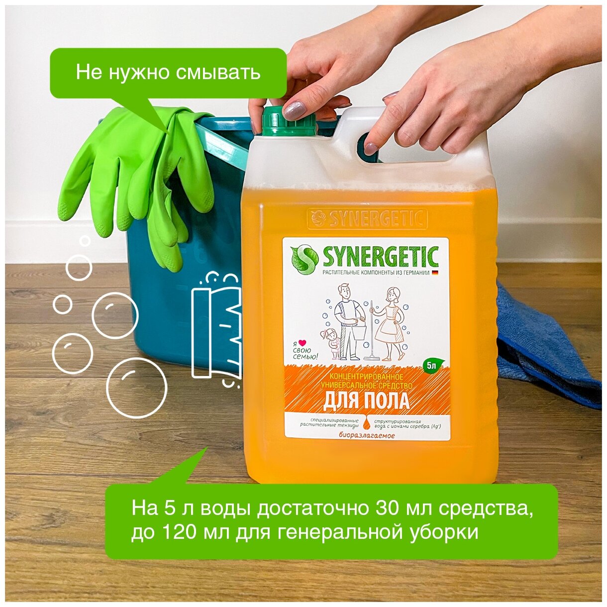 Чистящее средство Synergetic для мытья пола, 5 л