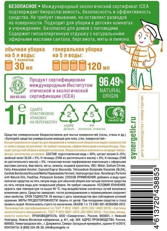 Средство универсальное моющее, 1 л, Synergetic