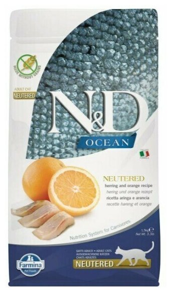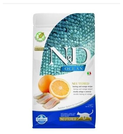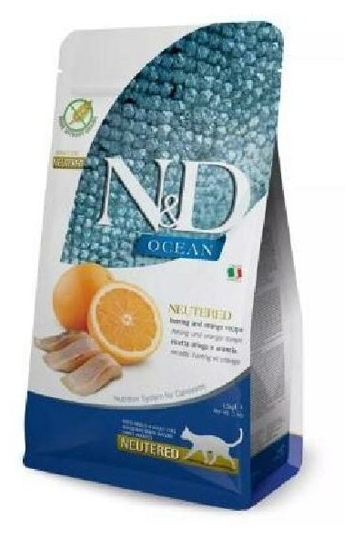 Farmina N&D Ocean Cat Herring And Orange Neutered Adult сухой беззерновой корм для стерилизованных кошек с сельдью и апельсином - 1,5 кг