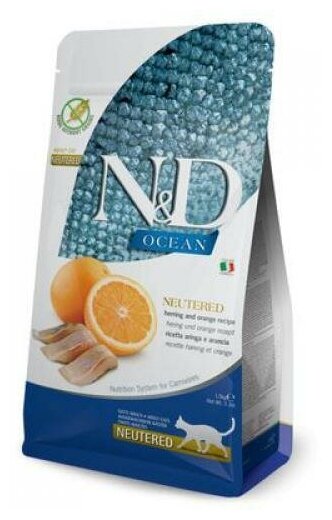 Farmina N&D Ocean Neutred - Сухой корм для стерилизованных кошек, сельдь с апельсином (1.5кг)